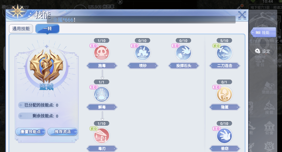 2.隐匿:隐蔽身形,使敌人无法发现,攻击会解除隐身状态;隐身后的下一次攻击必定暴击,并有几率使敌人眩晕1秒(自动战斗期间不会主动释放此技能)