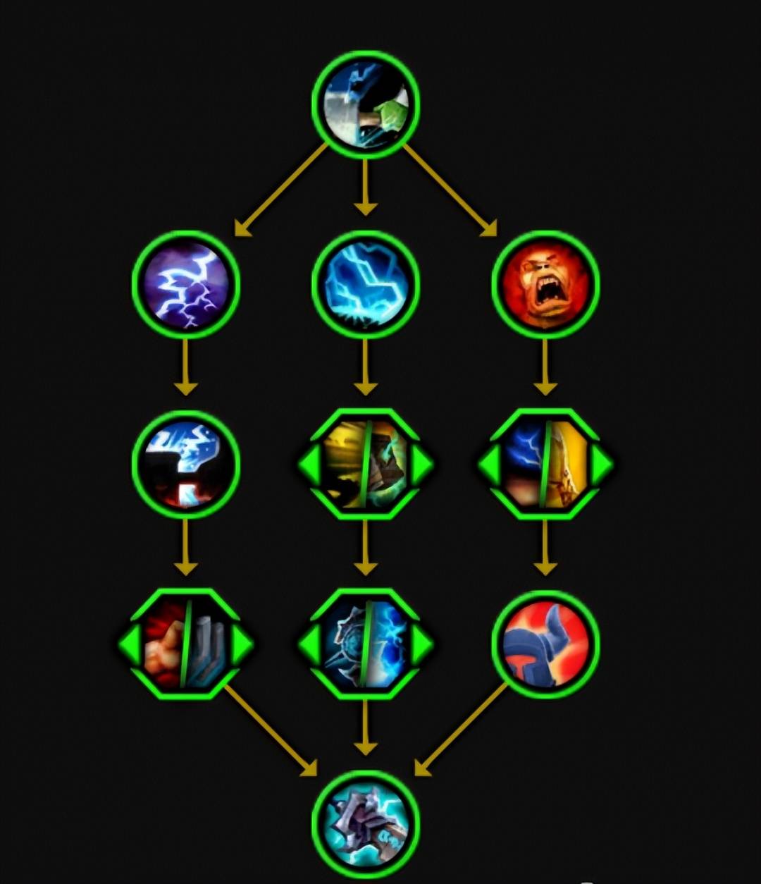 这效果看上去很给力,但英雄天赋分支下面的选项就很平庸了,譬如说防战:援护一个目标会使其获得护盾,吸收量等同于你护甲值的3倍,乘胜追击使你的最大生命值提高10%。狂暴战:让你的攻击触发闪电打击的几率提高15%,复仇,怒击和斩杀的伤害提高15%,闪电打击的爆击率提高5%,爆击伤害提高10%。这些设计几乎是照搬了9.0的导灵器玩法,甚至还没9.0的特殊技能形态有意思。