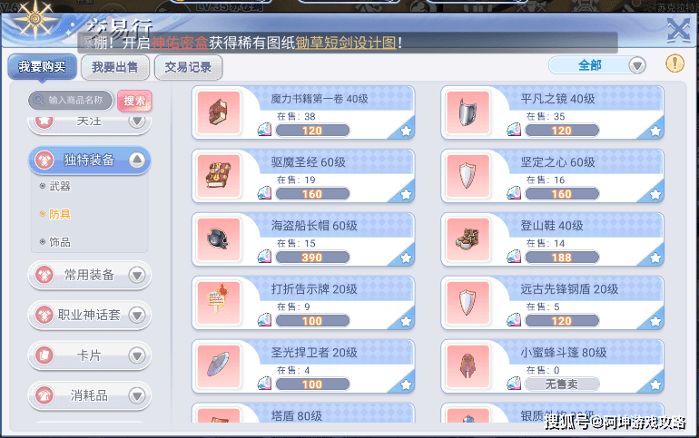 在到一定等级后,即可开区交易行,交易行的东西会随着市场的变化改变,如果想先赚一笔,可以先出装备,和卡片。等到降价市场饱和后再买回来!赚一笔差价