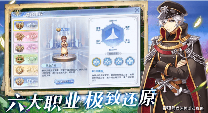 剑士:剑士是游戏的坦克职业,具有强大的生命值和防御力,主要技能偏向于坚守阵地和保护队友。转职后,骑士偏向攻击,而十字军则偏向更加坚实的防御。