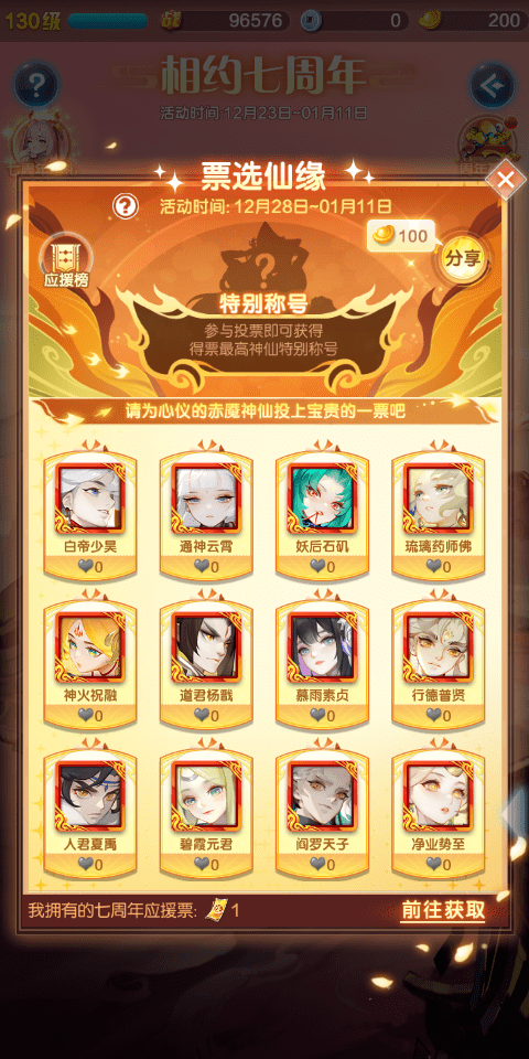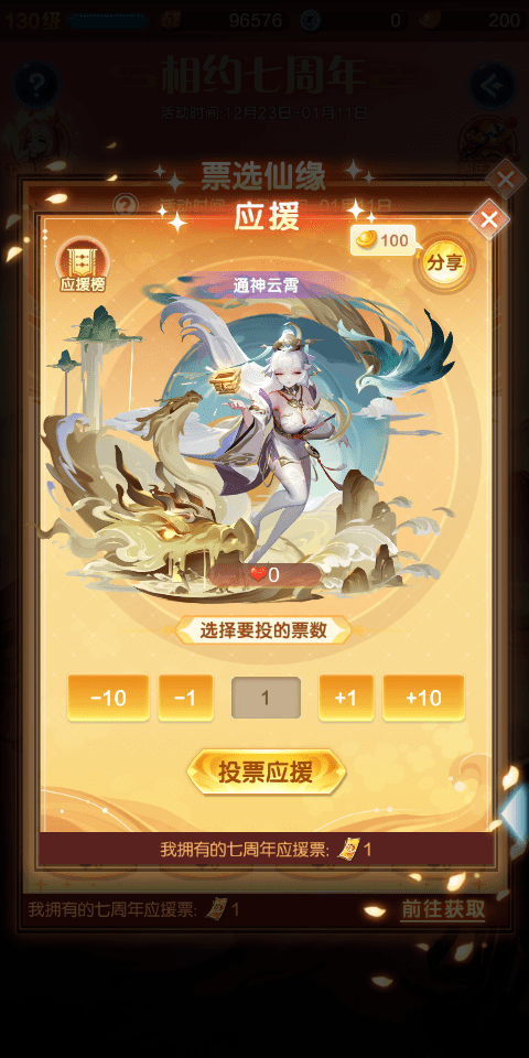 ● 玩家可以在投票期消耗应援票进行投票,应援票可在七周年相关玩法中获得