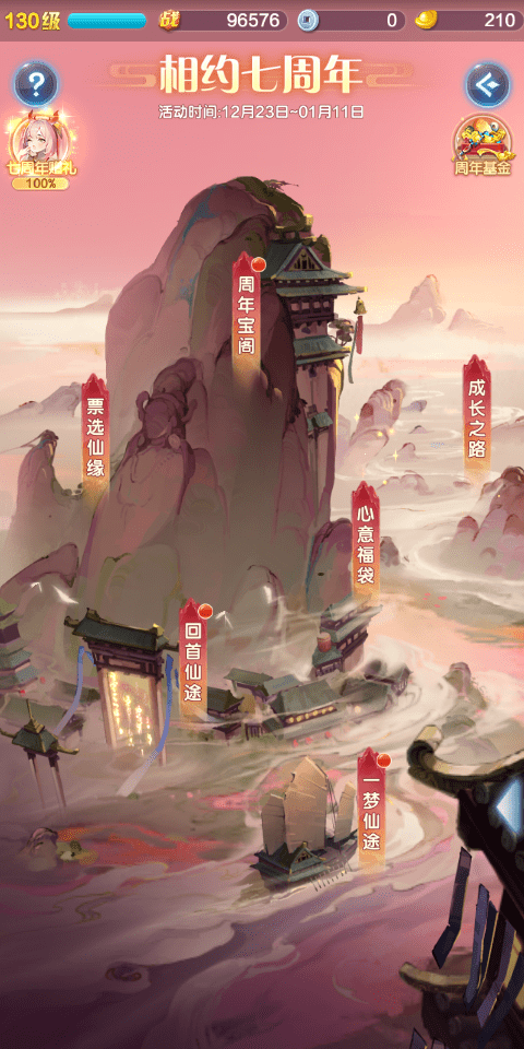 活动预热期间可进入七周年活动主界面,但是只能够参与仙界来客和一梦仙途活动,等到正式活动期,则可参与更多内容。