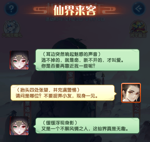 ● 处于新手期的服务器(开服1~10天),每日首次登录时,自动弹出仙界来客活动界面