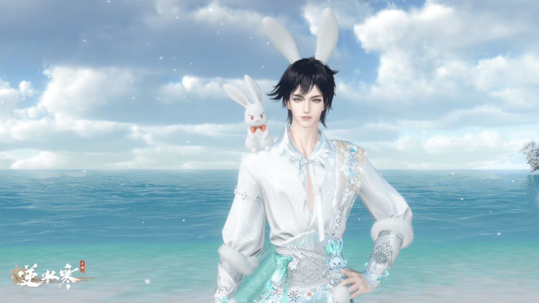 这次上线的外观以灵动可爱的兔子为灵感,想象一下,在冰雪之中出现一只毛茸茸的兔兔,那该有多可爱!这套【灵兔献瑞】采用了白绿色系搭配,茶百色干净圣洁,天缥色像清晨的水雾,是淡淡的蓝绿色。而艾绿色的加入,则让这套衣服看起来更具有生命力,也为整套衣服定下了灵动的气质。乳黄色增加视觉层次,让人眼前一亮!