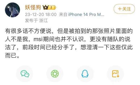 有网友分析Bin疑似无缝衔接现女友,并分析道:MSI期间还不认识,MSI是五月份 那就是五月份之后认识的 然后谈恋爱分手 然后又谈恋爱了 这今年赛程这么紧 又是夏季赛又是亚运会又是世界赛的 还能半年不到谈两个女朋友也挺厉害的。