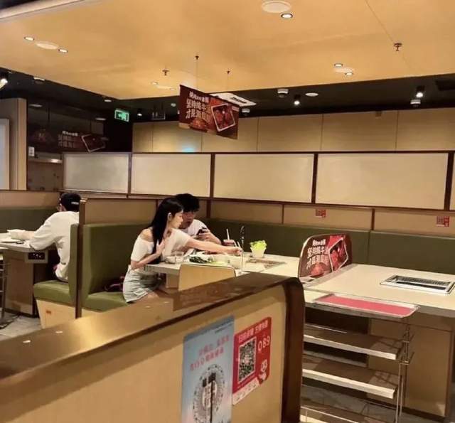图片中BIN和一女性同坐一边,正在吃着火锅,十分亲密。