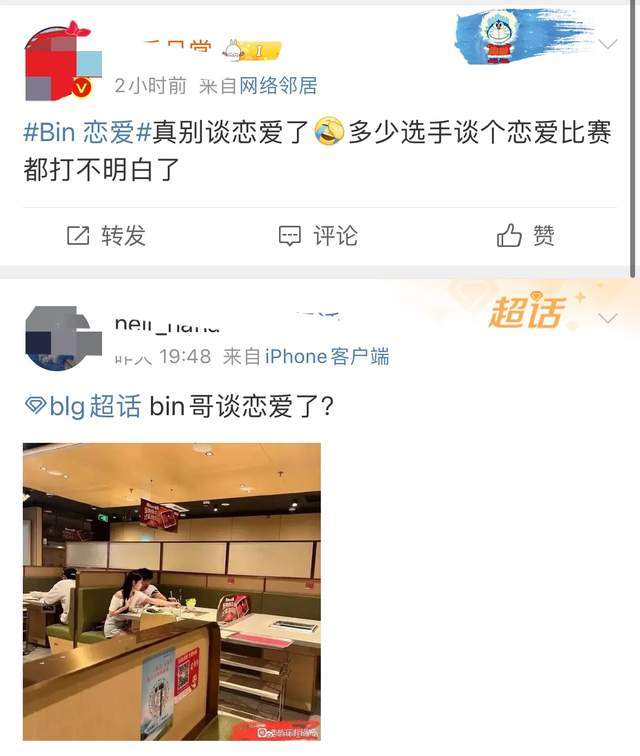 更有网友延深到Bin的世界赛表现,称Bin世界赛对战WBG被TheShy爆了,不会是因为谈恋爱了吧。