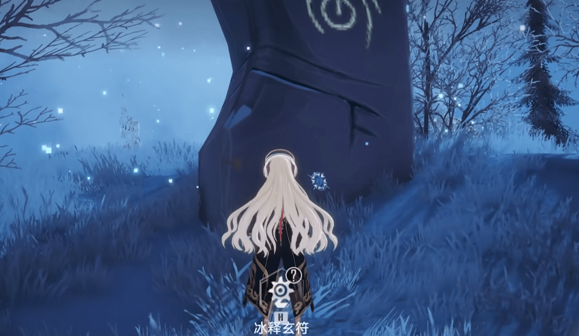 首先是冰释玄符,交付坎州明晶之后可以激活装置四周冰封的怪物,击杀这些怪物,就在不远处就会产生一个宝箱,和它交互就能领取奖励了。这里提到的坎州明晶是需要自己去地图上获取的,明晶分布在地图上脉石矿区四个字的下面,击碎蓝色的晶石就可以获得了。