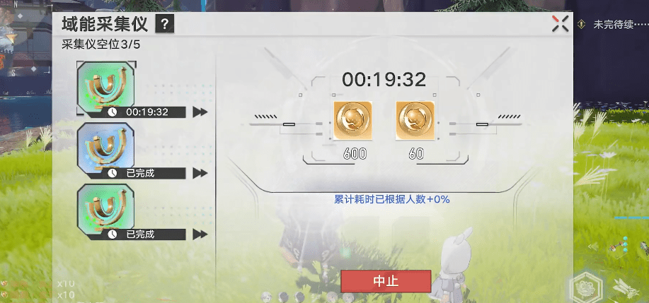 最后是域能探勘,开启之后,装置周围会生成一个黄色的能量罩,并且产生多个能量碎片,我们需要在激活时间内通过触碰来回收这些碎片,结束后每个碎片都会生成域能。