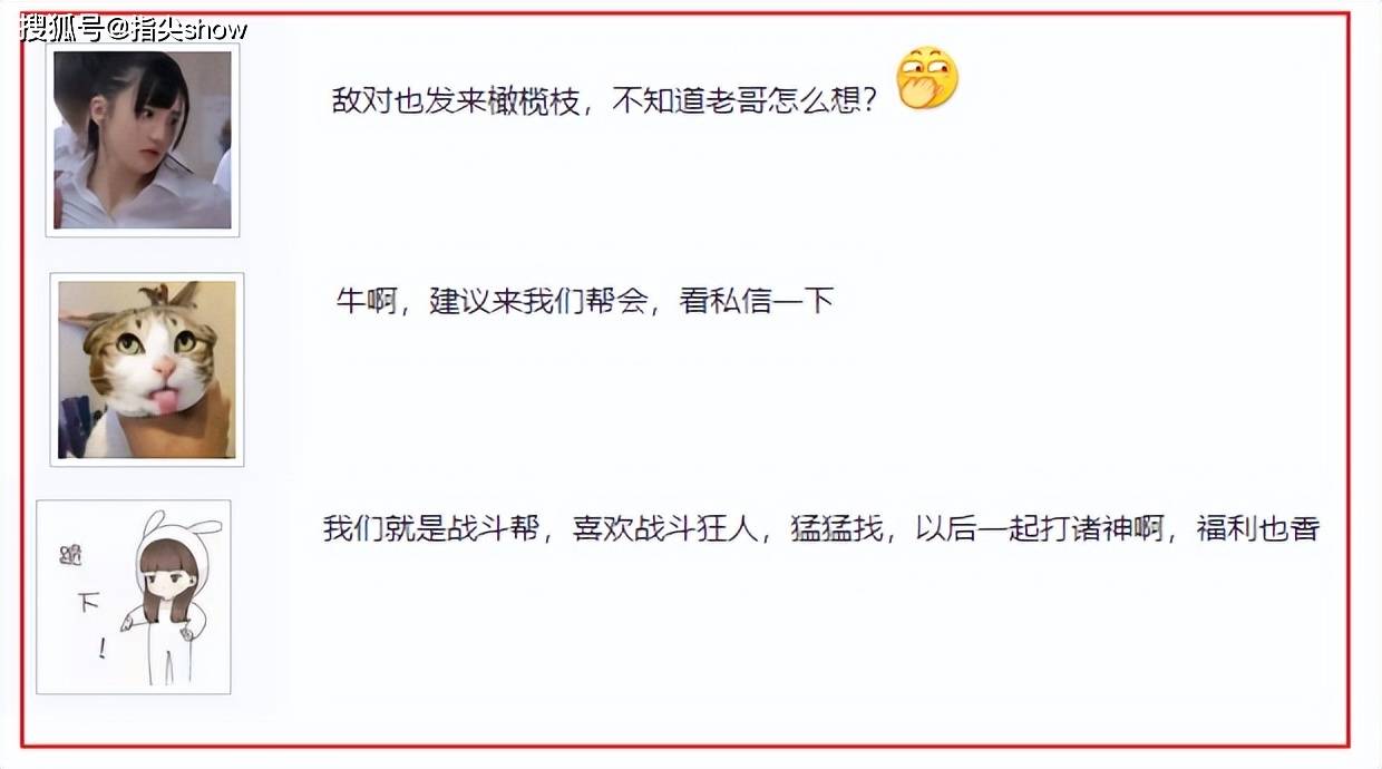 正所谓道不同,不相为谋,老哥愤怒退帮后,立刻吸引了大批战斗帮会给他递来橄榄枝,甚至是之前有过节的帮会也没放过老哥这个香馍馍。