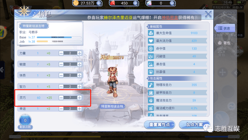 因为志胜这里主玩的就是弓箭手职业,所以这里就以弓箭手为例,弓箭手最看重的就是攻速,命中,给大家举个例子:假如说我们的攻速很快但是命中率很低一样是打不出伤害,反之命中率很高,但是一分钟射出几箭,一样没有伤害,所以,命中和攻速缺一不可,而灵巧这一属性正好可以将这两种属性同时加起;