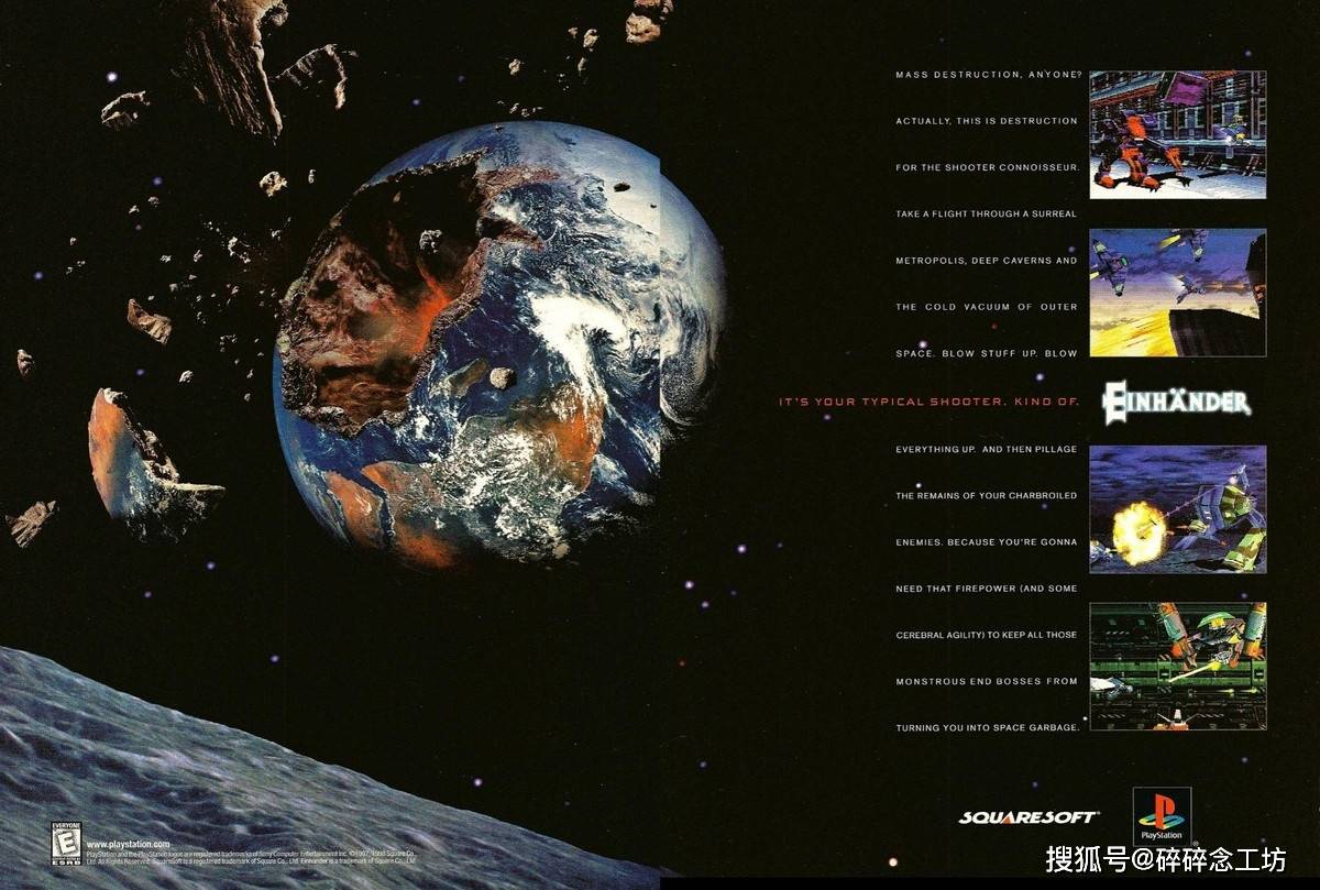 对于真正的全3D游戏,史克威尔也很早就开始研究,同时也借此机会尝试全新的类型,像1996年8月推出的《行星格斗》(Tobal),取得了92万套销量,整体表现不输老牌街机大厂;1997年11月推出的横版飞行射击游戏《独臂擎天》(Einhander),全3D背景加上丰富的武器效果运行流畅,31万套销量对于这类玩法可谓顶级。这些带有实验性质的游戏让玩家看到了史克威尔的强大实力,对于更多的3D画面游戏也充满了期待。