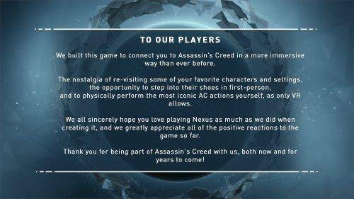 《刺客信条》官方Twitter/X账号今天发文,感谢玩家对VR游戏《刺客信条:联结核心》的支持。