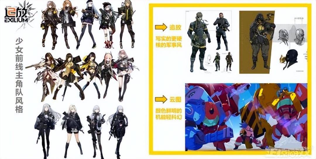 游戏美术团队表示这么做的目的是,保证游戏有类似《COD》,《全境封锁》和《战地》那样硬核战场的感觉,又保留大家熟悉的二次元风格。为此人物的色彩设计参考了科乐美的《合金装备》,游戏参考了万代南宫梦的《噬血代码》。