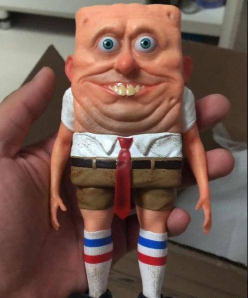 《海绵宝宝》这部老少皆宜的动画,想必大家都很熟悉了,动画塑造出无数深受孩子们和大人喜爱的可爱人物角色,其中以主角海绵宝宝和派大星两人的形象最受欢迎。正所谓“人红是非多”,《海绵宝宝》这部动画如此受欢迎,关于它的山寨周边产品自然不会少……而其中又数这款海绵宝宝和派大星的手办最为“毁童年”!
