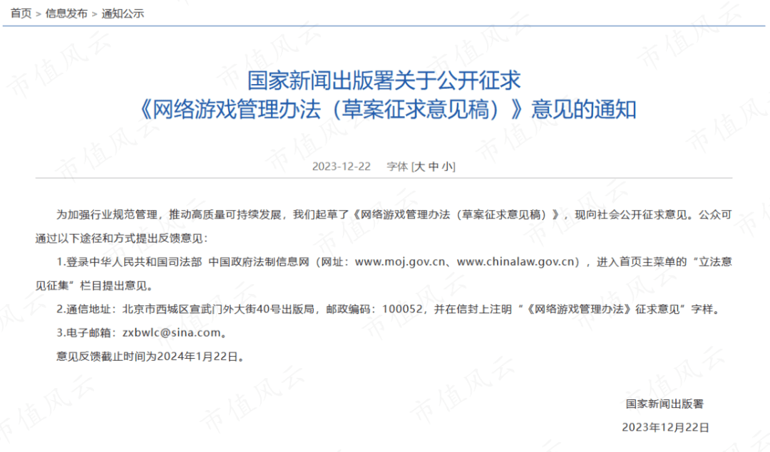盘后,有传言表示,该意见稿已经撤回,不过风云君在国家新闻出版署的官网还能找到该文。