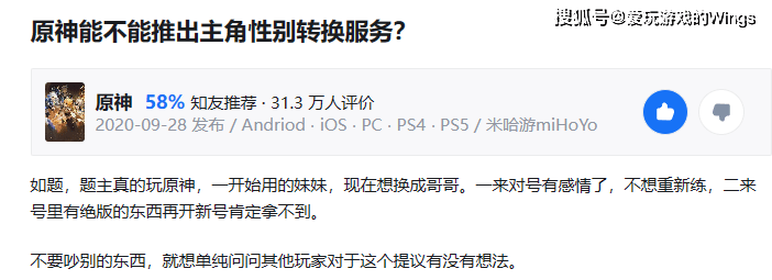 在许多RPG游戏中,玩家在创造角色时选择的性别通常是固定的,这意味着一旦选择了男性或女性,就无法更改。主要也是因为角色的性别可能与剧情和游戏世界的设定息息相关。如果角色在游戏剧情中的性别被频繁变化或选择,可能会给剧情带来困惑或不一致的问题。但是对于玩家们来说,换性别也是新体验,大家都希望可以随时随地切换。比如在原神中也常常看到玩家在问“主角能不能推出性别转换的功能”。