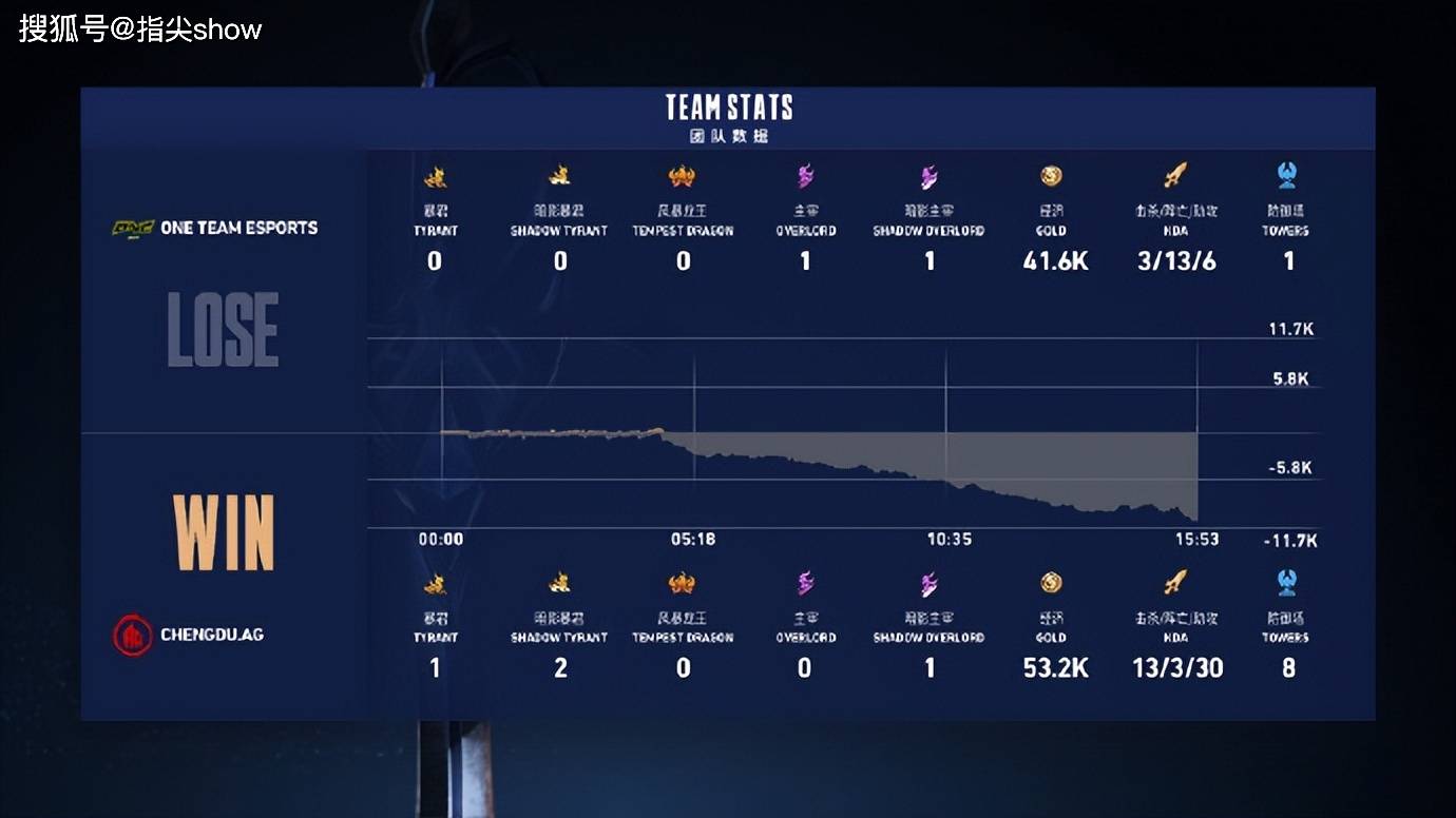4:0结束比赛,而看赛后的经济曲线都是没有波动的,证明了AG四局比赛都是碾压获胜,而人头比更夸张,ONE战队的四场击杀分别是3/3/4/1,没错,四局比赛一共也只拿了11个击杀,这AG看来是一点都没留手啊。