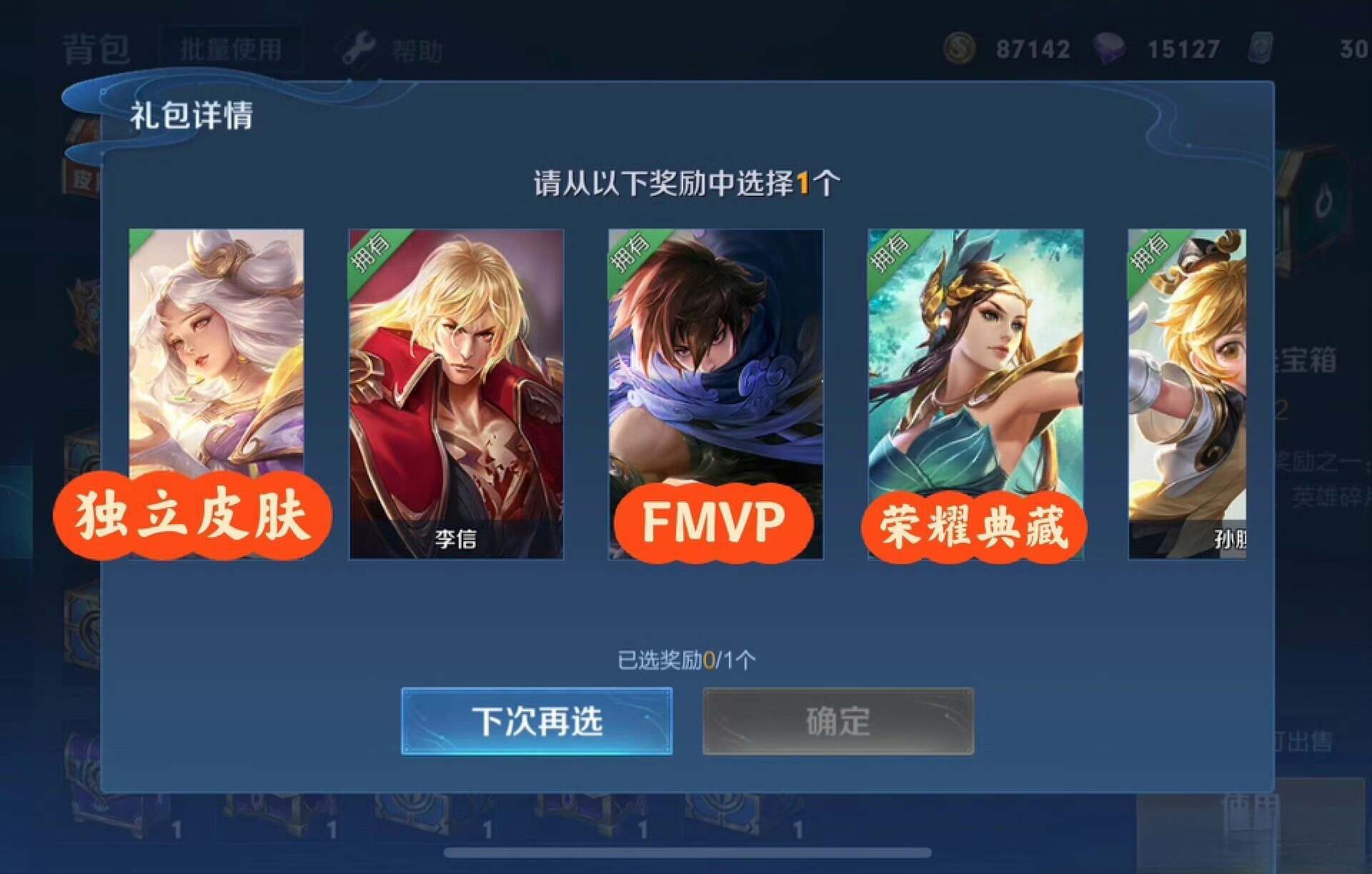 再来就是看看英雄宝箱里面的皮肤计划,其中孙膑的新皮肤已经上架了,至于嫦娥的新皮肤据说是独立的皮肤,不确定是传说还是史诗。澜的新皮肤则是FMVP皮肤,在近期本来就要上架的。至于虞姬的新皮肤,网传的一直是荣耀典藏,只是一直没有上架。