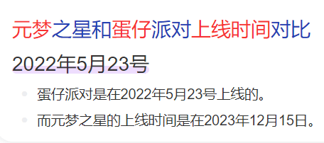 更离谱的是,元梦竟然说22年上线的蛋仔抄袭了23年末上线的自己,这可真是笑死人了。元梦你刚刚上线都没一天,就开始指责别人抄袭?网友自然不会惯着他,拿出两款游戏的上线时间,直接照着《元梦之星》的脸来了记响亮的巴掌。