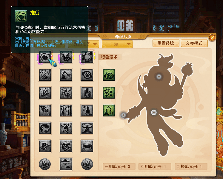 而且,通常情况下,在新区打造限制的情况下,第一周通常刷不到特别好的武器,导致输出门派无法打出想要的输出效果。不过,普陀山属于为数不多对武器依赖不高的门派,只要点出“推衍”乾元丹,就可以获得50点五行法术伤害能力和40点治疗能力,轻松通刷副本、奇谭等高难度任务。