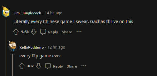 在红迪论坛上,各大游戏分版也纷纷开贴讨论这一消息,并且也大多是支持和赞同的声音。特别是提到“禁止诱导消费”条例,一个帖子中的高赞评论说道:“(这种做法)几乎在所有中国游戏里。Gacha(抽卡)游戏就靠这个活了。”另一位为玩家回复指出,不仅仅是中国游戏或是抽卡游戏,几乎所有免费游玩的游戏都在用各种心理陷阱诱导消费。其实有些付费的游戏也一样。