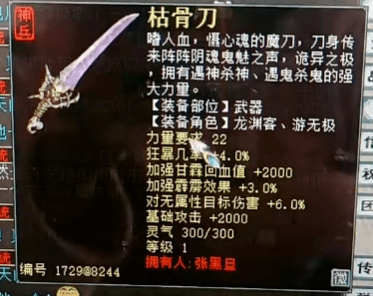 2、一把五阶武器的最新炼化,蓝字强毒伤12.3,特技黯骨(睡),这还不错哦