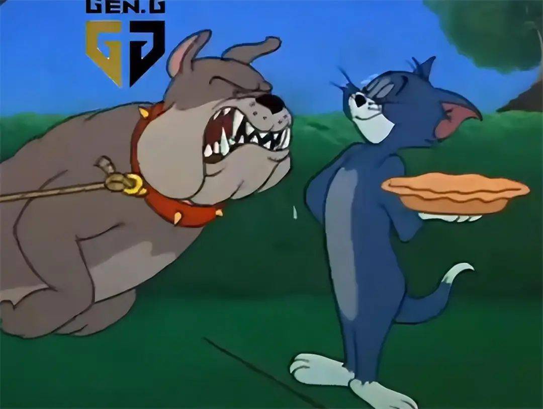 BLG的这个视频先放了GEN的声明细节,然后画出重点,质疑GEN的措辞。然后放了一段动画片,正是猫鼠中的一个片段。其中的狗狗被p上了GEN的logo,在这个片段里,狗狗被主角连续打了好几下。