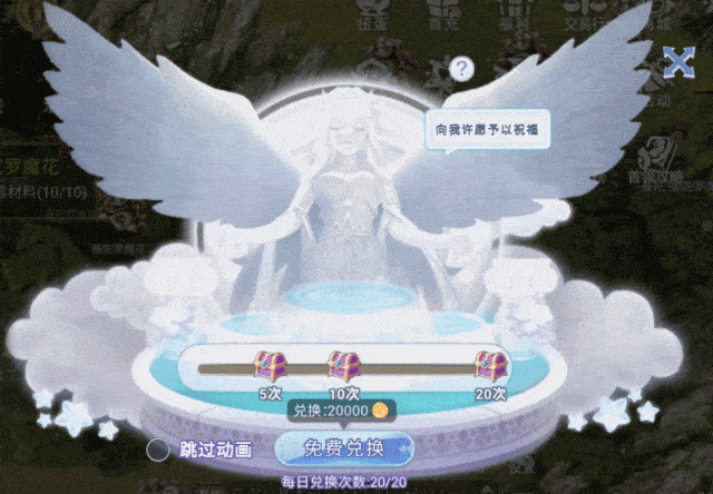 「许愿池」玩法每次兑换保底获得20000Zeny,有概率触发更高的神佑倍数,最高可获得10倍!
