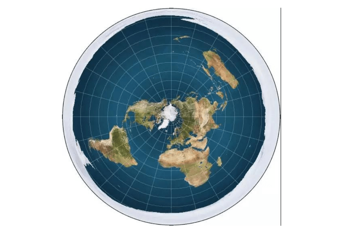 譬如说,他们认为地球呈圆盘型。北极点位于这个圆盘的中心,一层冰墙包裹了地球的大部分外围,以使海洋存续。这堵墙基本不可能靠近。因为美国国家航空航天局(NASA)正在对其进行严密保护。