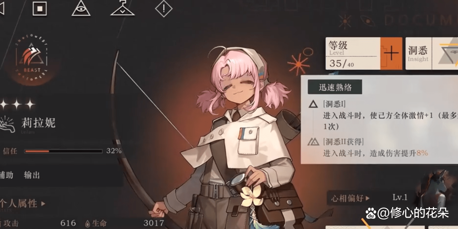 - 莉拉妮:平民输出战神,拥有T1级别的强度。虽然她的星级受限,后期属性相对较弱,但在前期足够强大,可以轻松应对剧情。作为全队的冲能型辅助角色,培养她绝对不会亏。