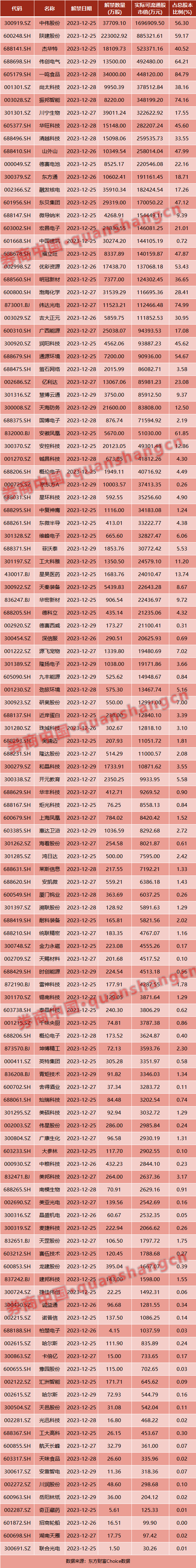 数据显示,本周(12月25日~12月29日)共有120家公司限售股陆续解禁,合计解禁量80亿股,按12月22日收盘价计算,解禁市值为941.26亿元。