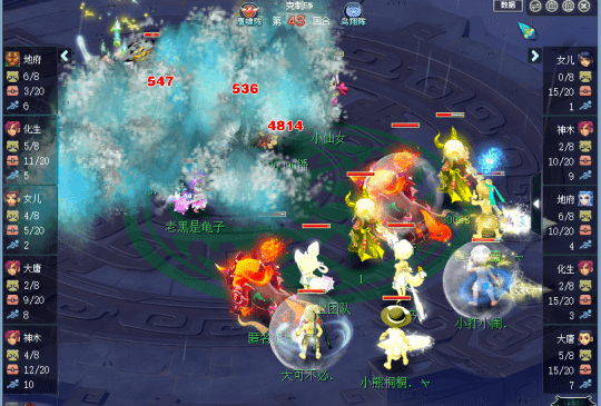 第10回合,生日快乐用出晶清,四扫配合五行法术击倒了夫子庙的天机城,但是因为灵元较少,夫子庙很快就拉起天机城变身高达,趁此机会,夫子庙将天机城血量活满。
