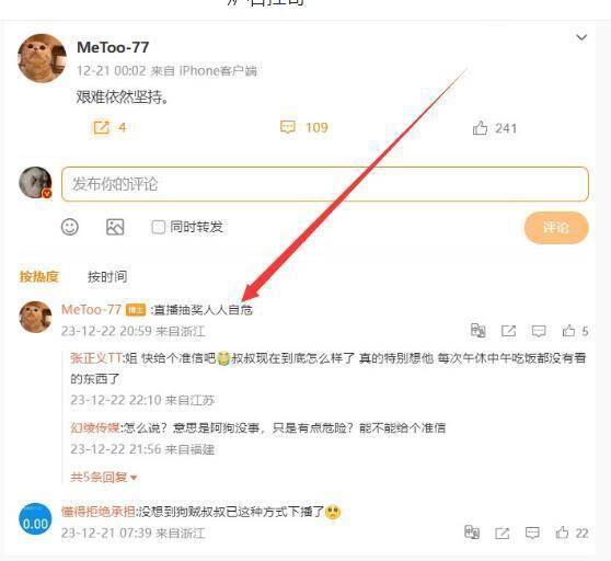而最近终于有消息了,那就是狗贼的妻子在VB和鱼吧罕见同步发文,内容为:艰难依然坚持!而且在评论区里面还表示:直播抽奖人人自危。很多人以此表示,狗贼妻子亲自证实,抽奖主播一个都跑不掉。
