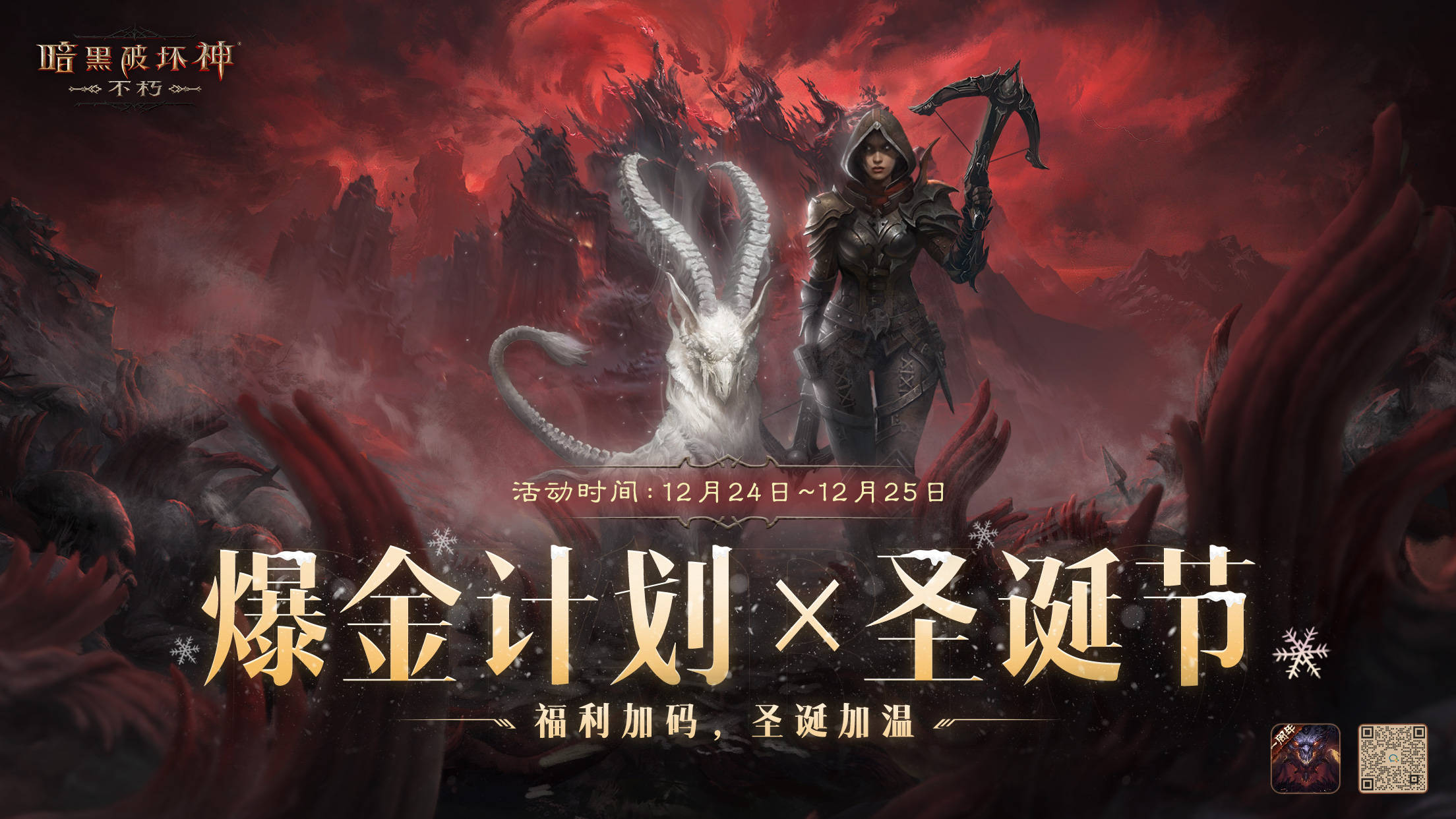 欢度暖冬,爆金不停!12月24日起爆金计划开启圣诞轰趴夜,为创作者们再送一波福利!玩家只要成功加入暗黑不朽爆金计划,并于活动时间内在抖音发布符合要求的圣诞主题创作视频,即可瓜分现金奖励!12月25日19:00起,前25名发布作品并达到播放量要求的创作者还能得到额外惊喜福利! 扫描图中二维码,马上加入爆金计划新手村共享圣诞福利!