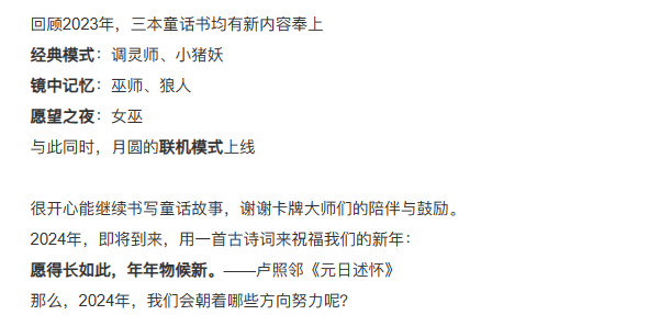 相对而言《月圆之夜》在镜中对决S2赛季当中为我们呈现出一个截然不同的流派和体系,为所有玩家增添了不一样的乐趣。如今也是新老赛季即将换季启航的时间,伴随着2024年的到来,在新的一年里S2赛季之中,相信各位能够玩得愉快!