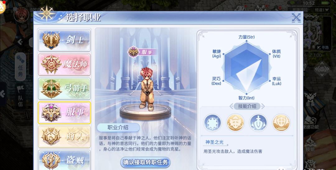 此外,还有一位非常重要的角色,那就是服事。服事不仅可以净化亡灵,还能治愈队友,为团队提供增益和后勤保障,是不能缺少的重要角色。