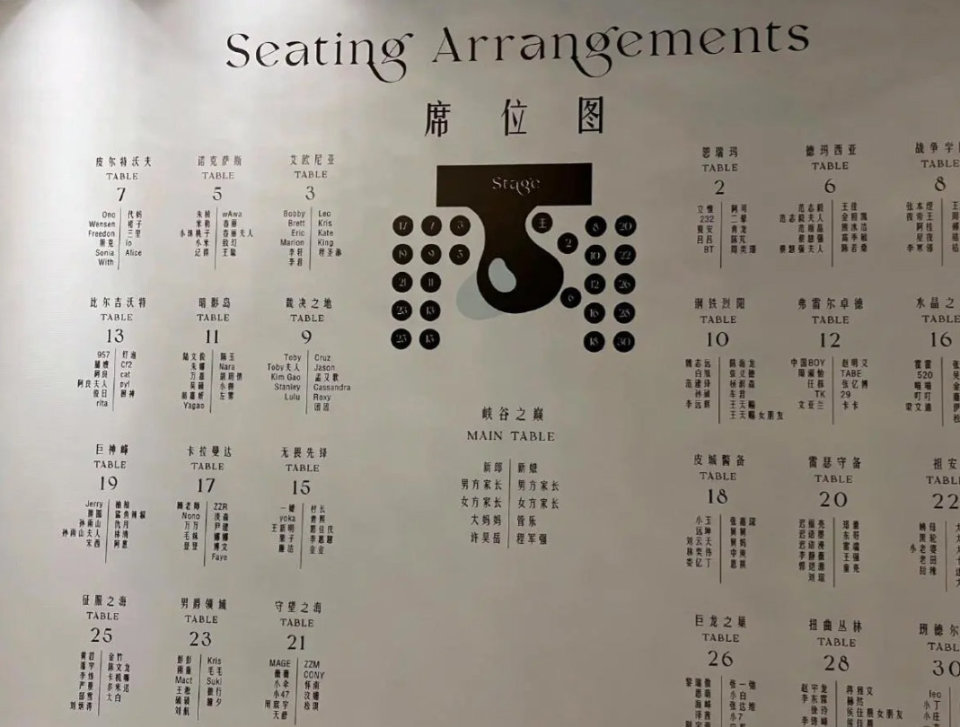 此次婚宴的装扮了主题都是精心策划的,虽然管泽元跟yagao等人说的很简单:尽管去操作,一切都很简单!但实际上背后是花了很多功夫和努力的,其中每张桌子都是以英雄联盟国服服务器为名,而菜单也是精心调整的,其中有黄金段位的花菜、水果阿卡丽、葱丝小鱼人等等,还是挺有意思的!最后在此祝福管泽元和余霜新婚快乐,百年好合,早生贵子!