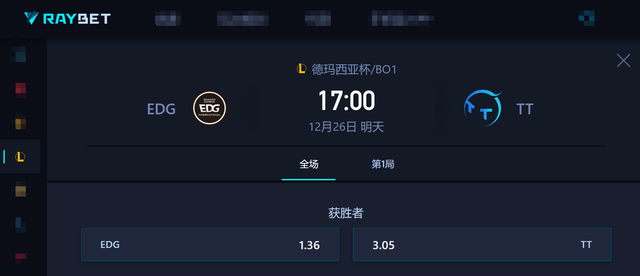 而这场EDG对阵TT的较量,无疑可以提前一窥EDG新赛季的水平。对于EDG来说,上野的比拼无疑是不会畏惧TT,但是中路新人Fisher能否扛住UCAL的对线压力需要打一个问号。根据赛前专业电竞预测平台给出的数据,EDG这场比赛是以1.36稳占上风,显然作为豪门有着深厚底蕴的情况下,哪怕更换了新人的EDG还是有着更多让人看好的理由。