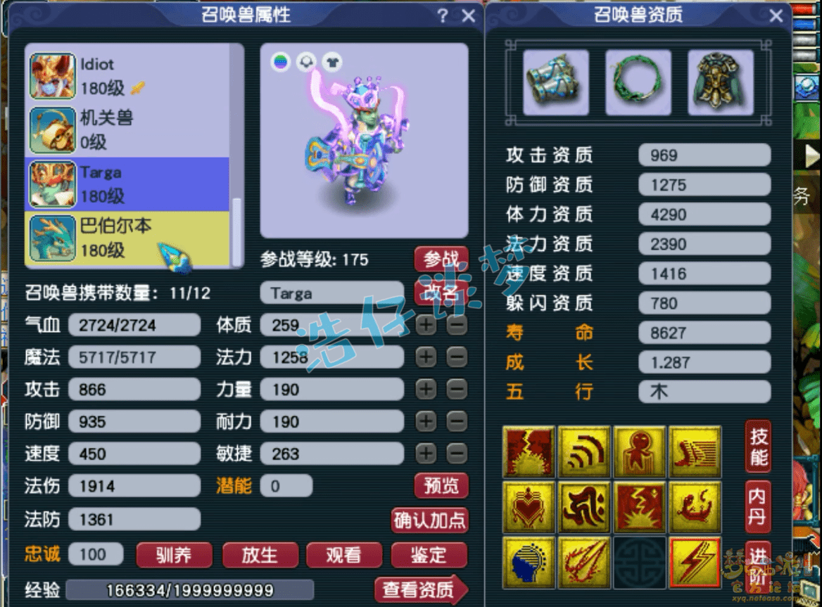 175级凌波城没打临时符的面板属性,打符之后伤害能达到3200左右,无论是刷任务还是打帮战,这个伤害都足够用了!