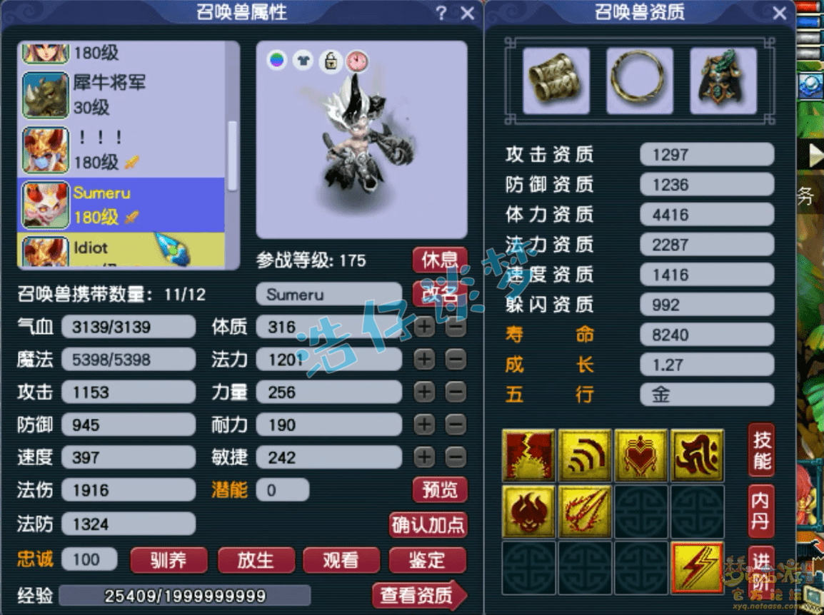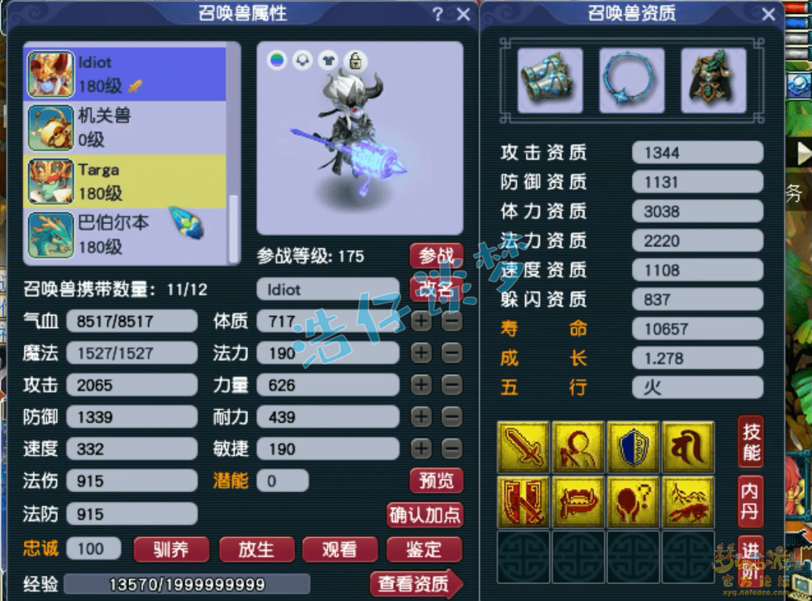 10技能高连血攻童子,任务与帮战通用的宝宝,如果高敏捷换成高幸运或者高招架就完美了!