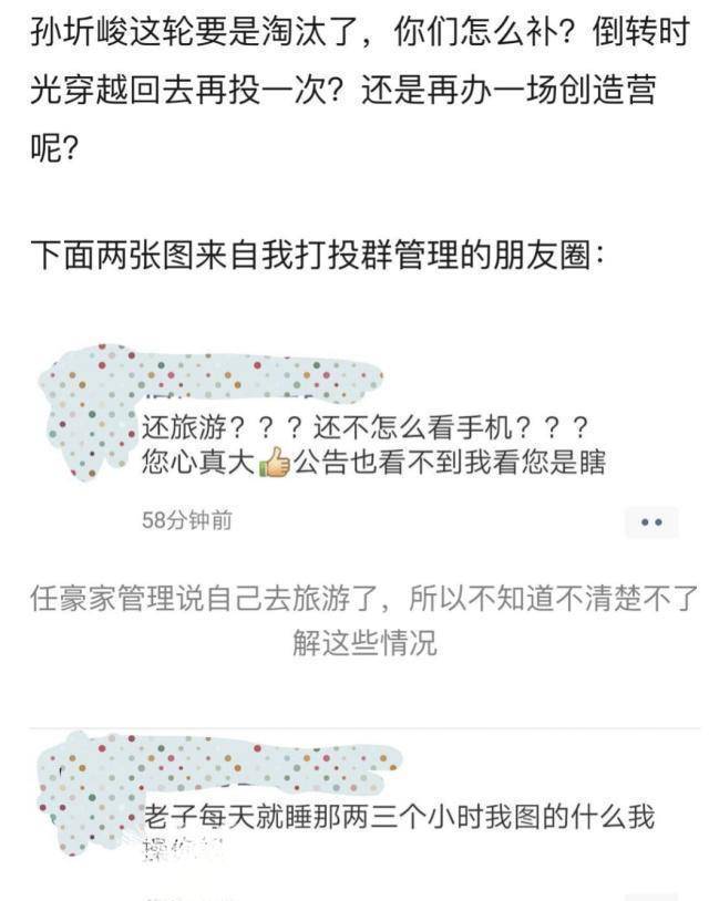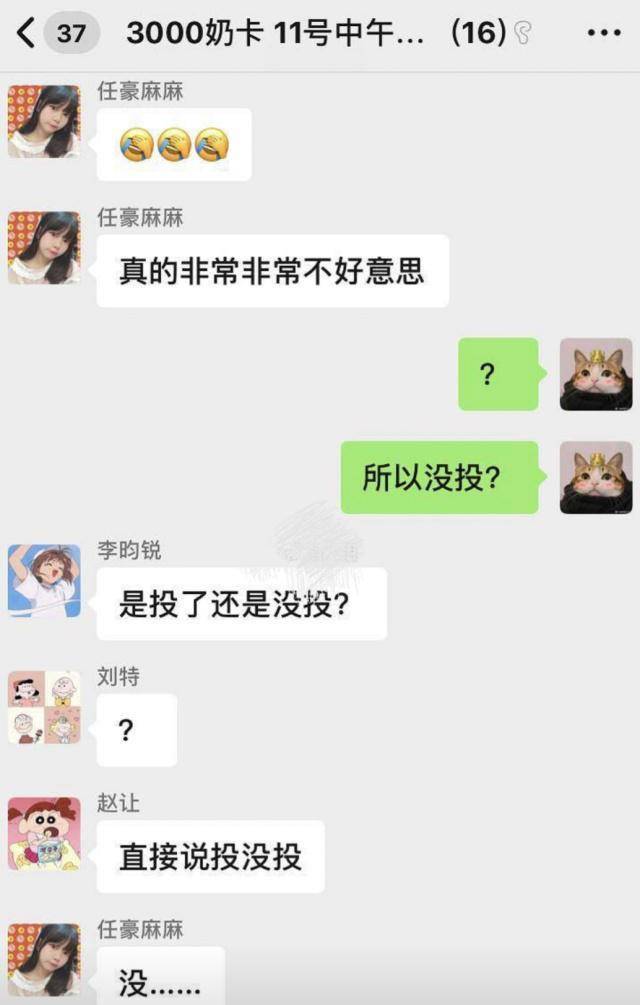 不过,在经过激烈的投票之后,事情还是出了纰漏。有网友曝光任豪的后援会并没有像当时约定好的那样投票换票,导致其他选手的票数比预想的要低处一大截。据网友曝光的截图来看,任豪的后援会有3000车没互投,换做票数就是将近13万的票。也就是说,同组的其他偶像的后援会给任豪投了,但是任豪的后援会没互投。