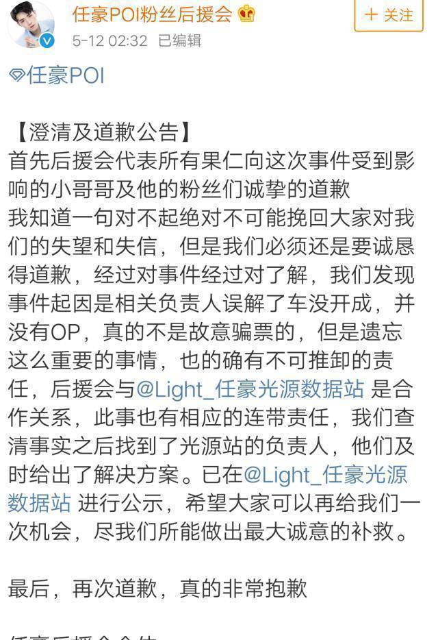 除此之外,更是有人曝光了任豪后援会的负责人当时是出去旅游去了,并不知道这件事。