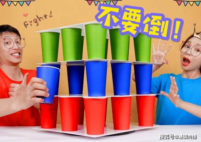 游戏道具:一叠红杯子、几个黑杯子