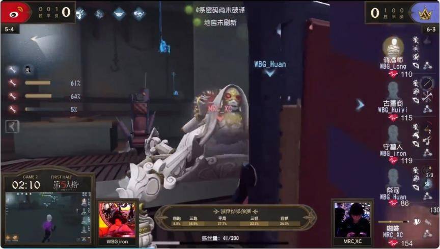 求生者 WBG 战队——Pick: WBG_Long 入殓师 WBG_Huan 画家 WBG_iron 先知 WBG_Huiyi佣兵