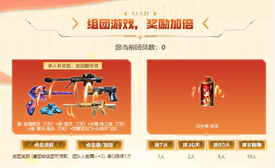 在活动期间,与好友成功组队即可领取加倍奖励哦,全新投掷道具闪光弹-凤灵等你组团免费来领!