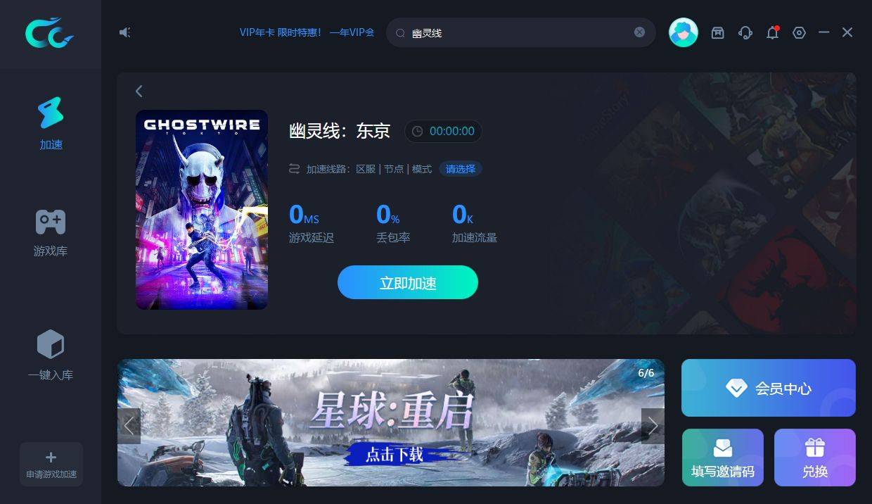 在你游玩 《幽灵线东京》 时没有加速器怎么办,在这里我给大家推荐 CC加速器加速,它提供该游戏的免费加速,并支持Steam上的永久加速。