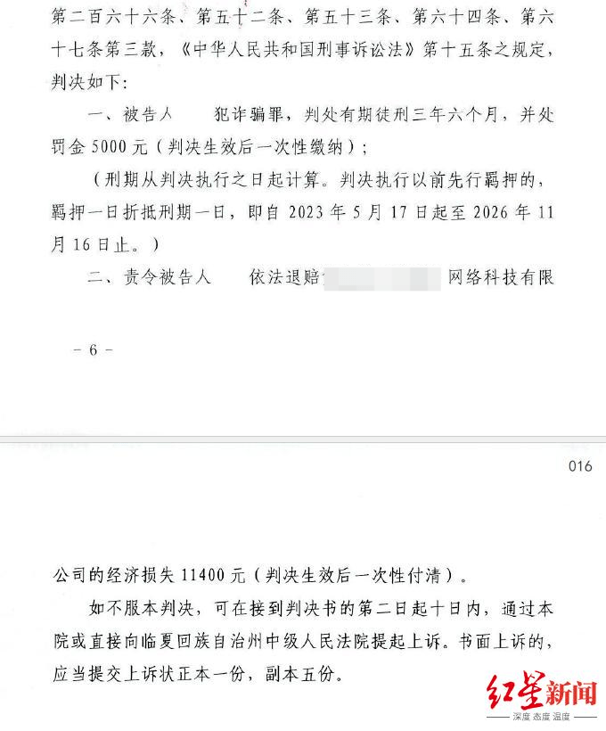 就在接受红星新闻采访前,孟先生刚刚收到甘肃省和政县人民法院作出的刑事判决书。判决书显示,该“圈号”团伙共作案11起,涉及金额109181.79元。因构成诈骗罪,该案年仅19周岁的主犯被判有期徒刑3年6个月,并处罚金5000元。