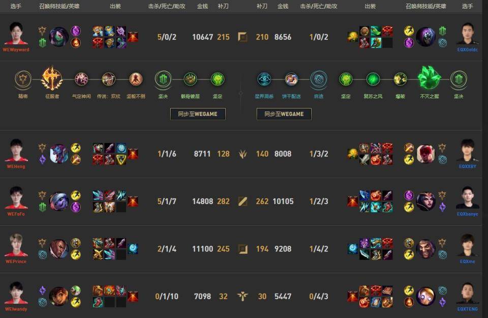 而另一支战队表现也很好,他们就是WE,他们打了3场比赛,前面两场都赢了,但是最后一场面对的是TES,最终是输掉了这场对决,对于他们来说是很遗憾的,特别是他们的上单,因为上单就是大黄。