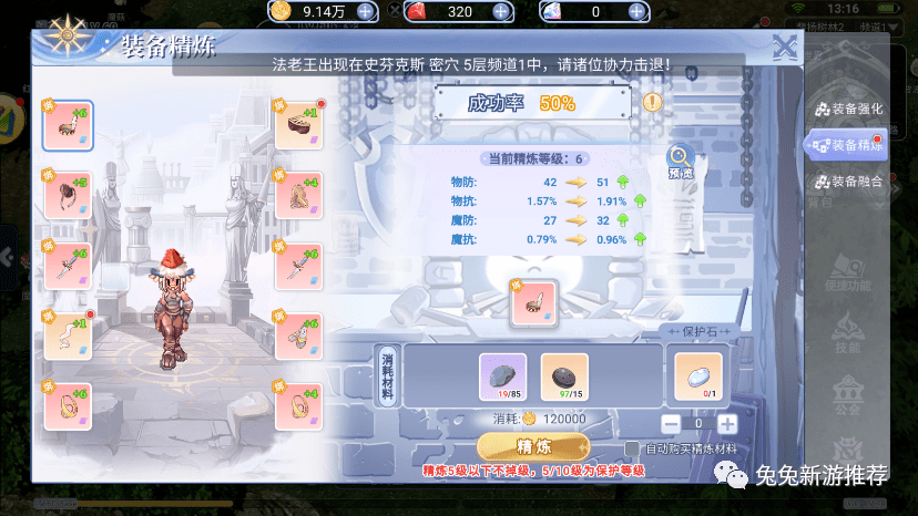 这俩个对于战力提升很多,特别是精炼,提升是真的多,当然精炼是跟着装备走的,如果你确定后期不会更换装备可以考虑将装备拉到6级就差不多了,要不然失败是会降级的。